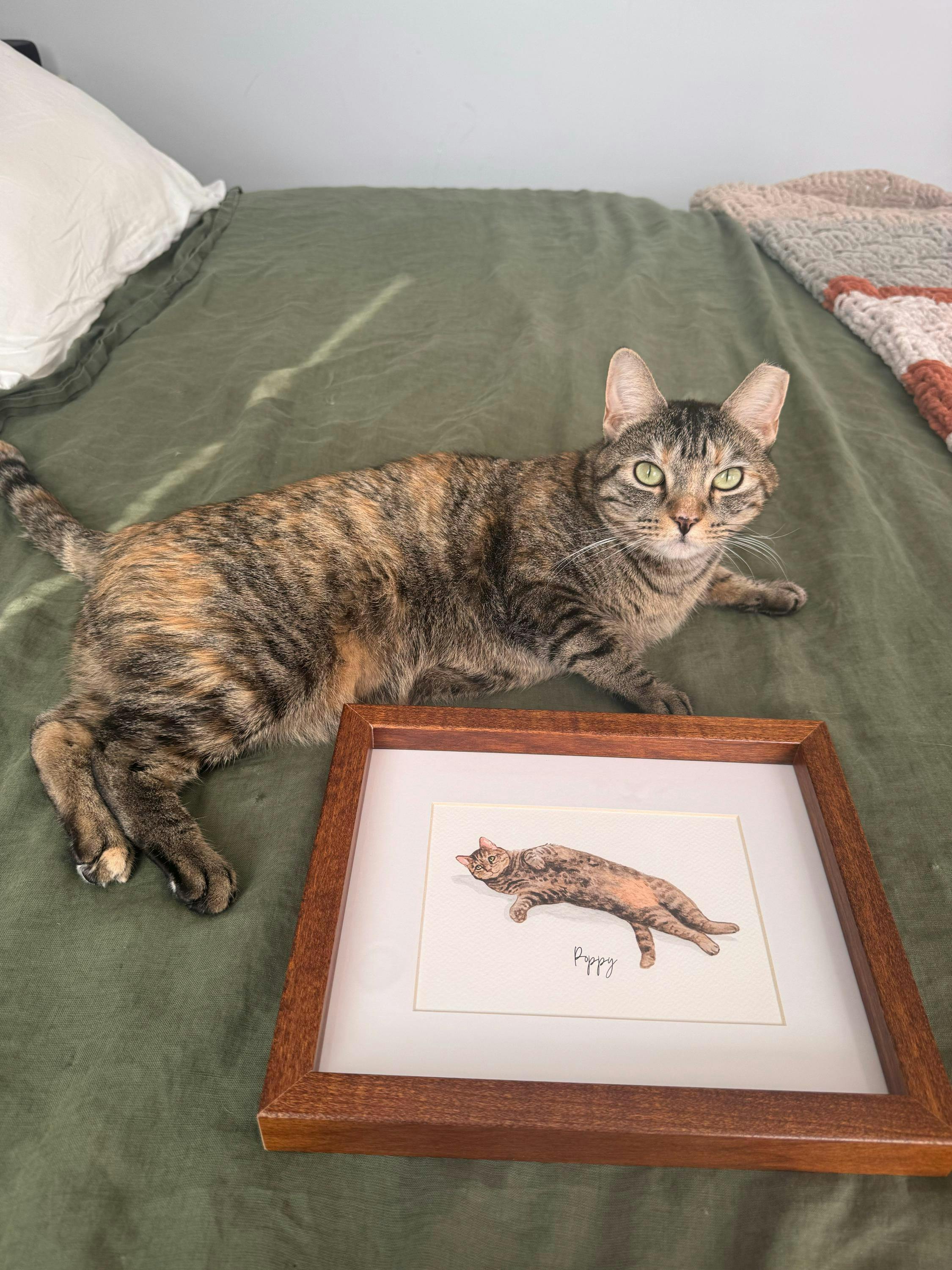 Order after my dog passed as a way to keep her alive in our home. It is beautiful. I did digital print but would probably buy the original painting if I were to do it again, just because of how special it is. Love it though