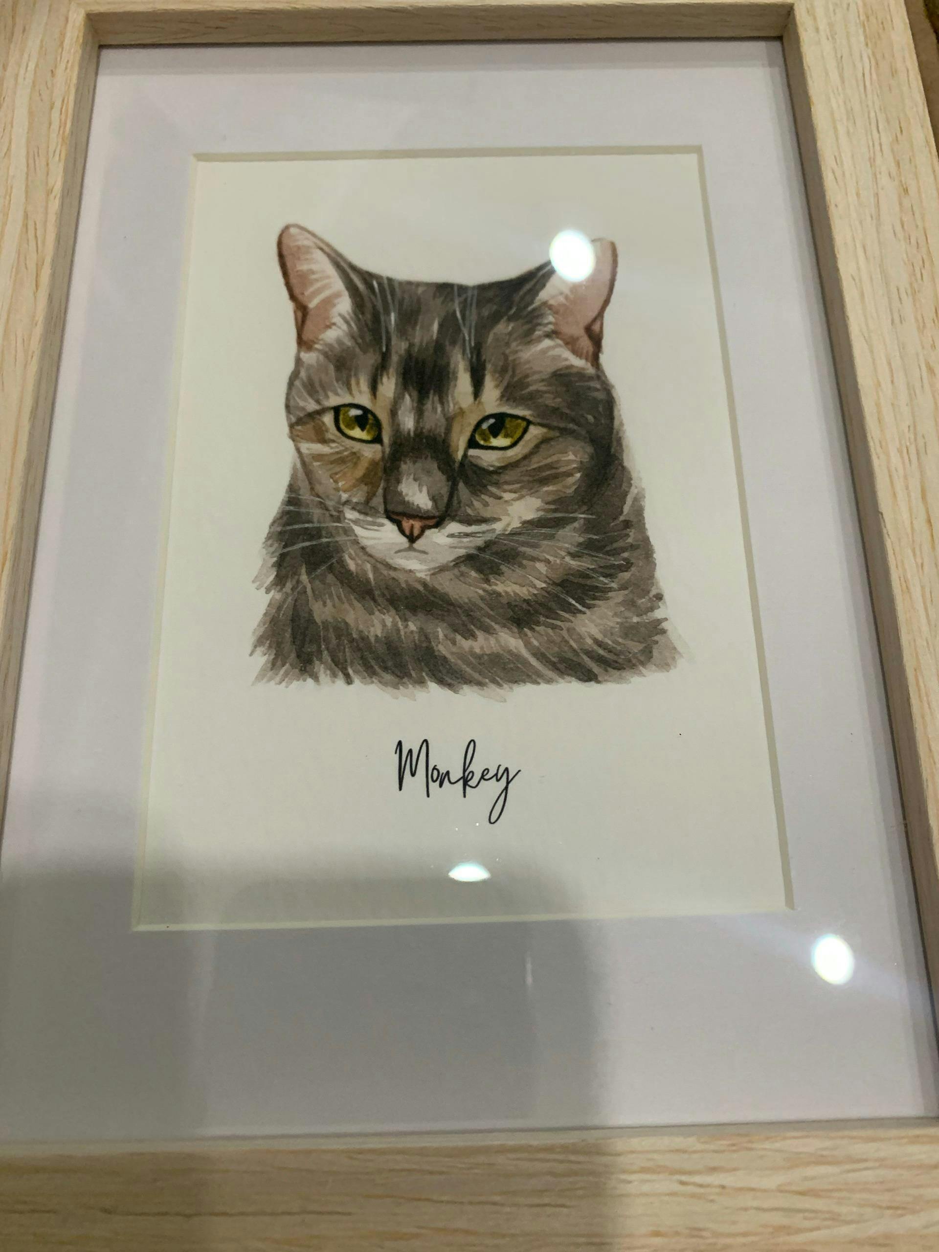 Such beautiful and accurate portrait! I'm giving this to a friend who lost her kitty after 17yrs. I'm certain she will love and cherish this portrait. It looks so much like her kitty Monkey! Thank you so much!